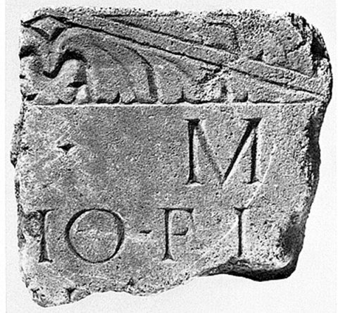 - Oberhalb der rahmenlosen Inschrift Rest eines eingeschriebenen Giebels mit Akanthusblättern.