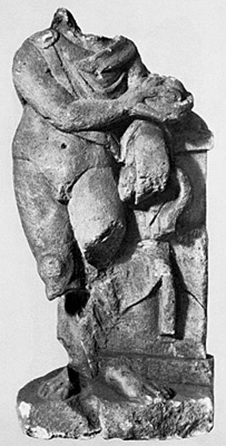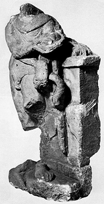 - aus 3 Fragmenten zusammengesetzt, Kopf, Unterschenkel und Adler abgebr.