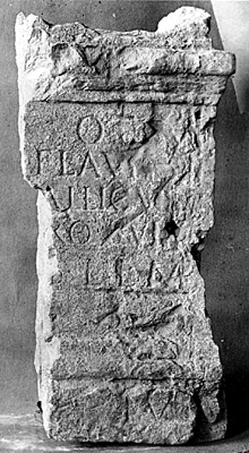 - I[(ovi)] O(ptimo) M(aximo) / [T(itus)] Flavius / [G]allicus / [p]ro suis / [v(otum)] s(olvit) l(ibens) l(aetus) m(erito) // [---] I V [---]