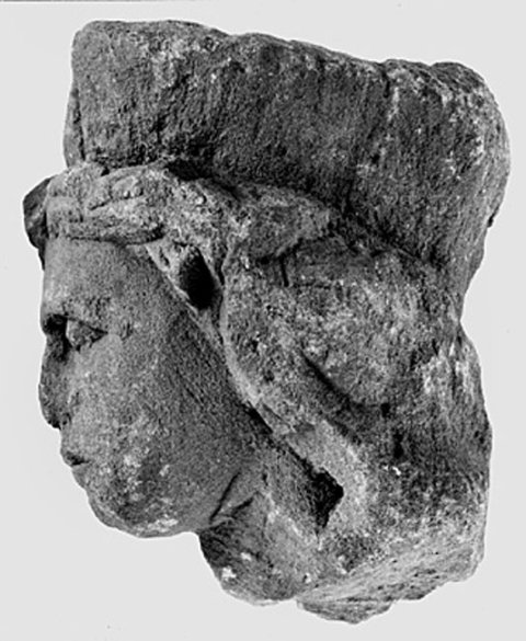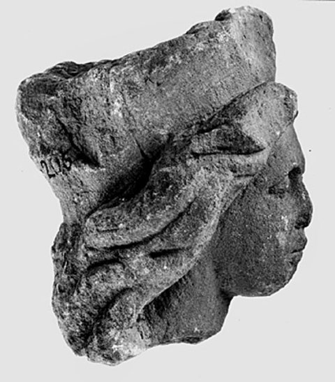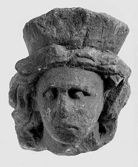 - mythische Figur: Kopf eines Genius mit Mauerkrone und langen Locken