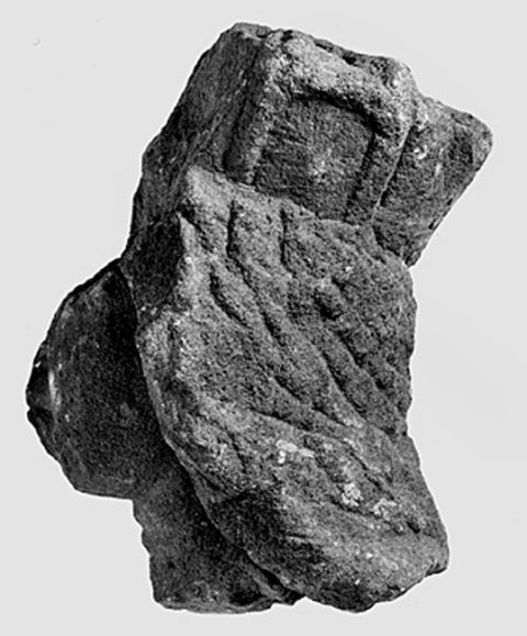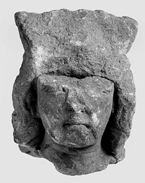 - mythische Figur: Kopf eines Genius mit Mauerkrone und langen Locken
