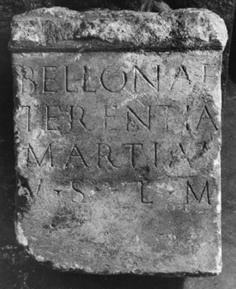 - Bellonae / Terentia / Martia / v(otum) s(olvit) l(ibens) m(erito)