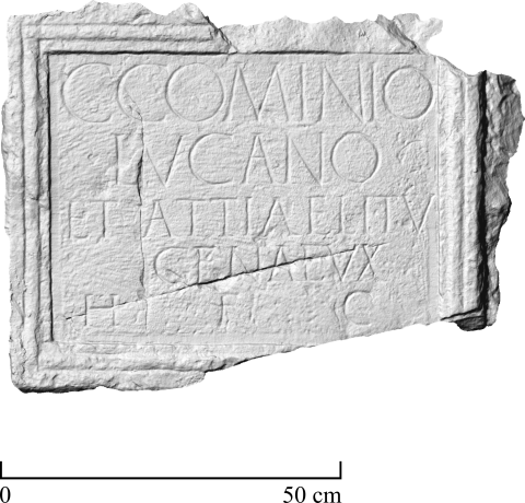 C(aio) Cominio / Lucano / et Attiae Litu/genae ux(ori) / h(eres) f(aciendum) c(uravit)