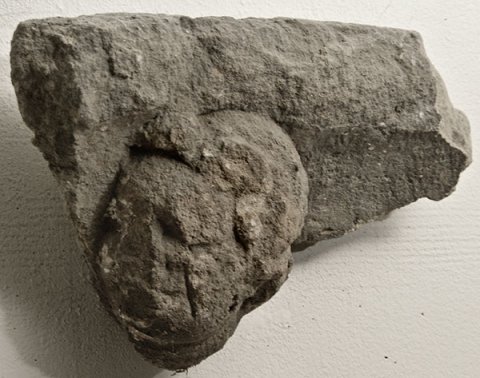 - nach links blickender Kopf mit Lockenkranz um die Stirn