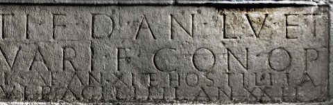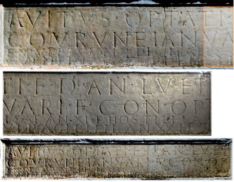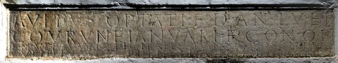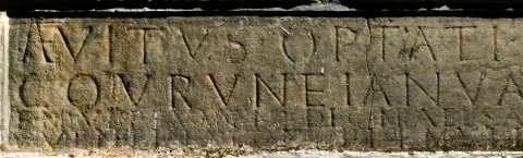 - Avitus Optati f(ilius) d(efunctus) an(norum) LV et / Covrun(a)e Ianuarii f(iliae) con(iugi) op(timae) / [a]n(norum) [---]di[-]mae an(norum) XI [e]t Hostil{l}ia / [---]na con(iux) [---] Ulp(ia) Acili fil(ia) an(norum) XXII