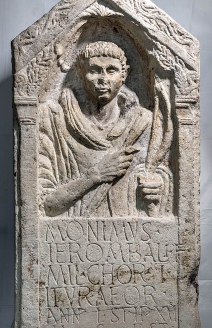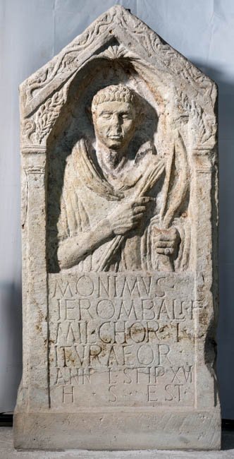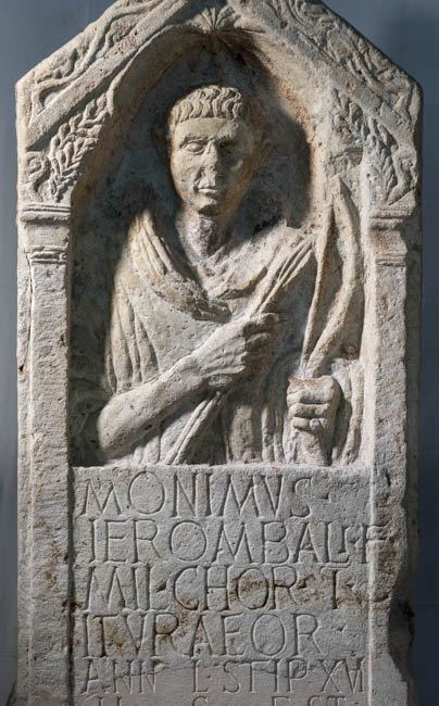 - Monimus / Ierombali f(ilius) / mil(es) c(o)hor(tis) I / Ituraeor(um) / ann(orum) L stip(endiorum) XVI / h(ic) s(itus) est