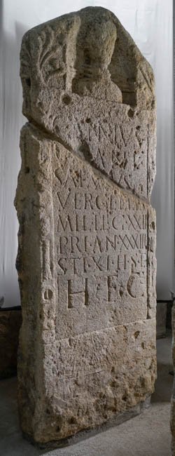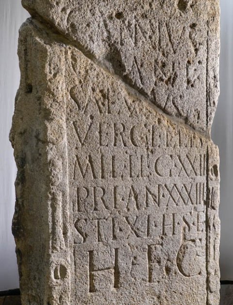 - C(aius) Annius / C(ai) f(ilius) Ani(ensi) / Salutus / Vercellis / mil(es) leg(ionis) XXII / Pri(migeniae) an(norum) XXXIII / sti(pendiorum) XI h(ic) s(itus) e(st) / h(eres) f(aciendum) c(uravit)