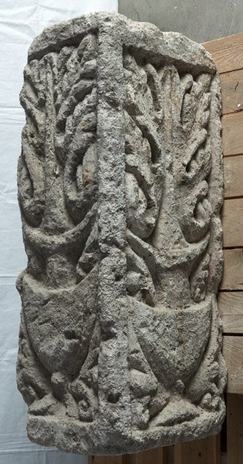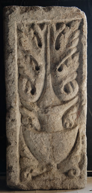 - Auf Vorder- und linker Nebenseite jeweils ein Krater mit Akanthuspflanze. Rechte Seite geglättet.