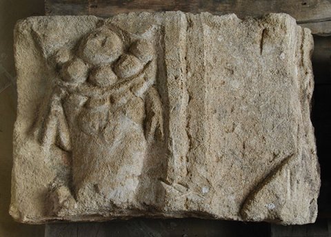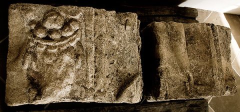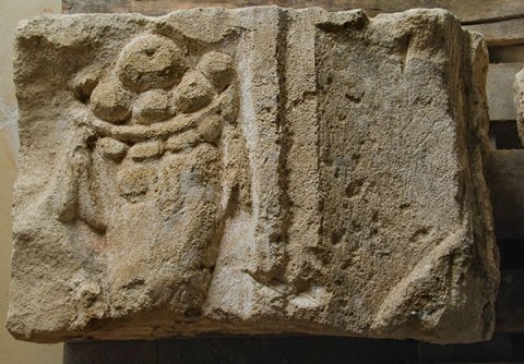 - Füllhorn mit Früchten. Rechts anschließend gerahmtes Feld mit Reliefresten.