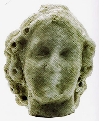 - Mythische Figur (Eros - Amor): Kinderkopf mit langen Locken und Scheitelzopf.