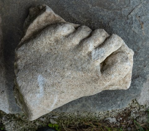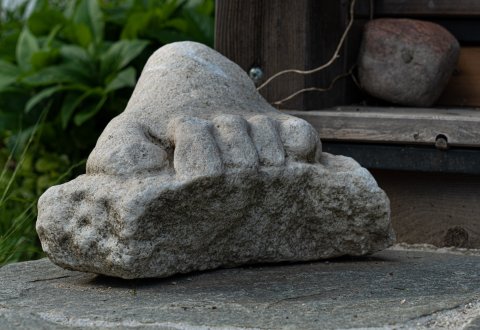 - mythische Figur (Gott ?): linker Vorderfuß einer etwa doppelt lebensgroßen Statue
