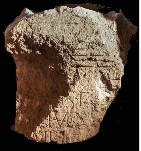 - rundum abgebr., rote Farbreste in d.Buchstaben