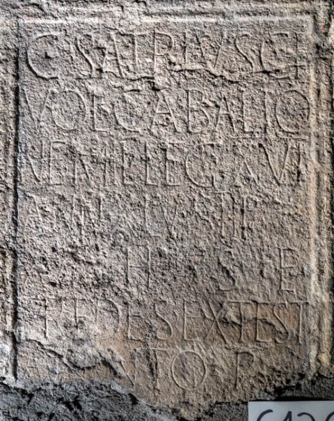 - C(aius) Satrius C(ai) f(ilius) / Vol(tinia) Cabalio/ne mil(es) leg(ionis) XVI / ann(orum) XLV stip(endiorum) / XX h(ic) s(itus) e(st) / (h)eredes ex test/a[me]nto p(osuerunt)