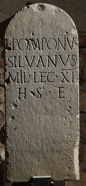 - L(ucius) Pomponius / Silvanus / mil(es) leg(ionis) XI / h(ic) s(itus) e(st)