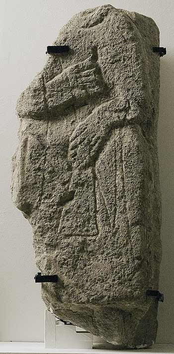 - Einheimische Frau: sitzende Ganzfigur (Halsreif, langes Gewand mit Gürtel).