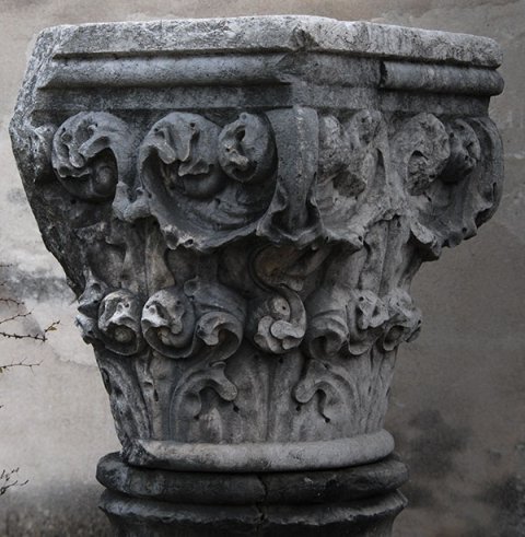 - Kapitell mit Akanthusblattkränzen, die Blattspitzen zu Voluten eingerollt