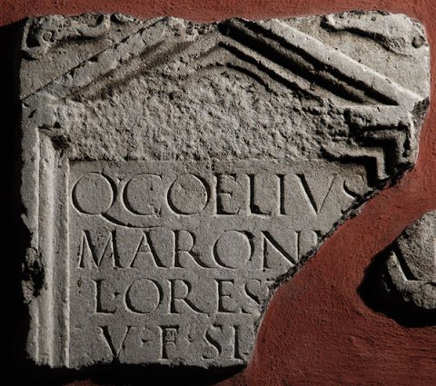 - Q(uintus) Coelius / Maroni[s] / l(ibertus) Orest[a] / v(ivus) f(ecit) si[bi et ---
