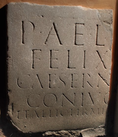 - P(ublius) Ael[ius Aug(usti) lib(ertus)] / Felix [v(ivus) f(ecit) sibi et] / Caesern[iae Saturninae] / coniug[i carissimae] / et Aelio Firmi[no filio pientissimo a(nni) I]