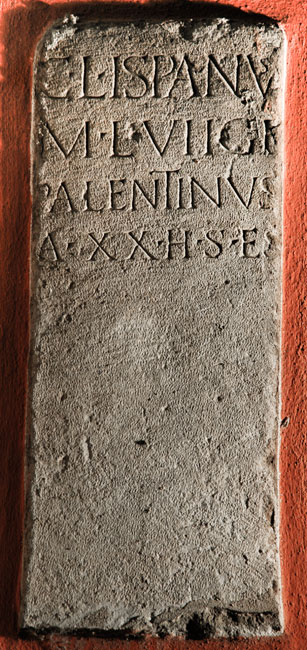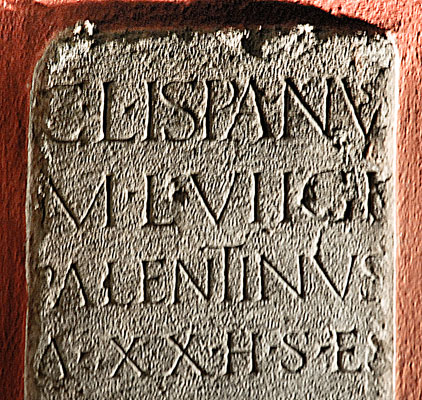 - C(aius) L() (H)ispanus / m(iles) l(egionis) VII G(eminae) F(elicis) / Palentinus / a(nnorum) XX h(ic) s(itus) es(t)