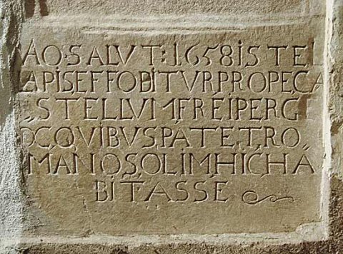 - Inschr. im 17.Jh.nachgemeißelt, unten latein. Inschr.aus dem Jahr 1658