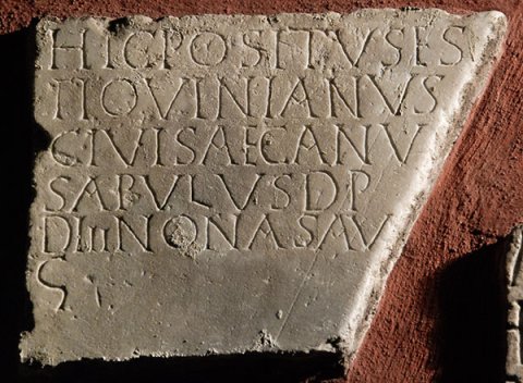 - Hic positus es/t Iovinianus / civis Aecanu/s Apulus d(e)p(ositus) / d(ie) III Nonas Au/g(ustas)