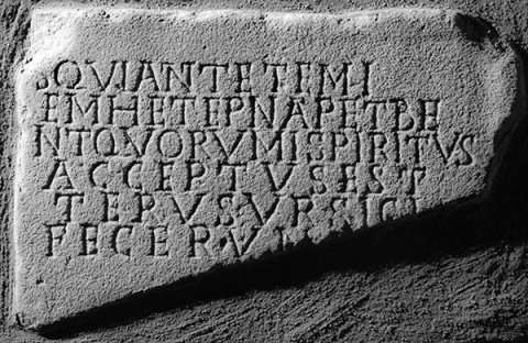 - dormis cum ii]s qui ante te mi[hi] / [erepti quiet]em h(a)eterna(!) pet<i=E>be[runt] / [bene mere]nt(es) quorum ispiritus(!) [inter] / [sanctos] acceptus est / [Eleu]terus(?) Ursici[na] / [parentes]fecerunt [