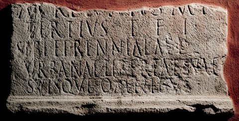 - M(arcus) Re[nn]ius M(arci) f(ilius) / Tertius t(estamento) f(ieri) i(ussit) / sibi et Renniae M(arci) l(ibertae) / Urbanae libertae suae / suisque omnibus