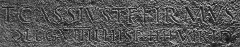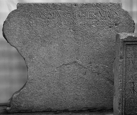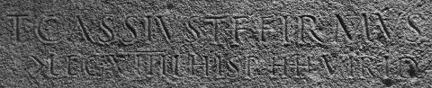 - T(itus) Cassius T(iti) f(ilius) Firmus / |(centurio) leg(ionis) VIIII Hisp(anae) IIIIvir i(ure) d(icundo)