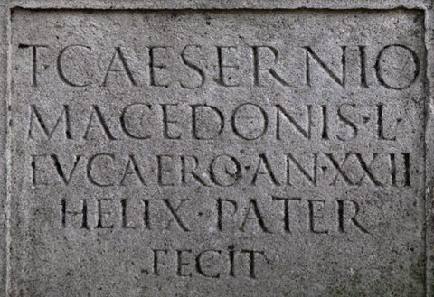 - T(ito) Caesernio / Macedonis l(iberto) / Eucaero an(norum) XXII / Helix pater / fecit