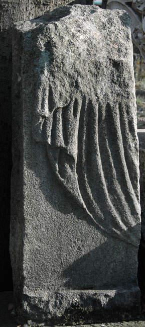 - Rechteckiger Pfeiler, über den Falten eines Mantels (?) herab hängen.