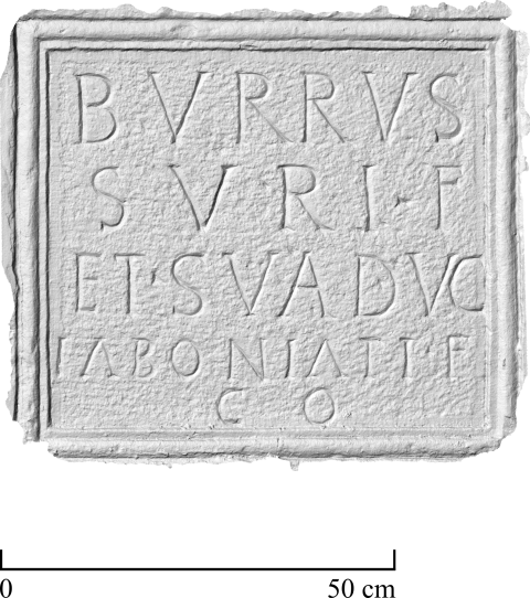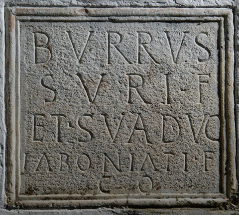 - Burrus / Suri f(ilius) / et Suaduc/ia Boniati f(ilia) / co(niux)