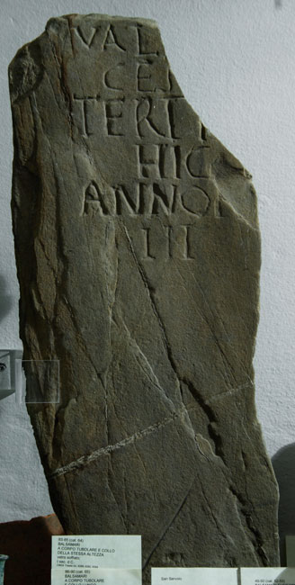 - Valens / Cestius / Terti f(ilius) / hic / annor(um) / III