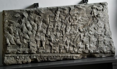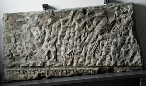 - 1 Fragment der Frontseite mit unterem Rahmen, Relief z.gr.T. abgeschlagen
