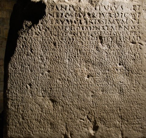 - nahe der Porta di San Lorenzo in die mittelalterliche Stadtmauer verbaut