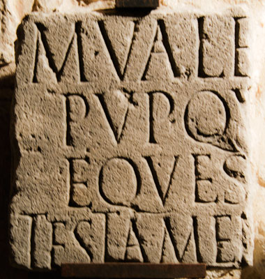 - M(arcus) Vale[rius ---] / Pup(inia) Qu[---] / eques [Rom(anus)] / testamen[to f(ieri) i(ussit) ---]