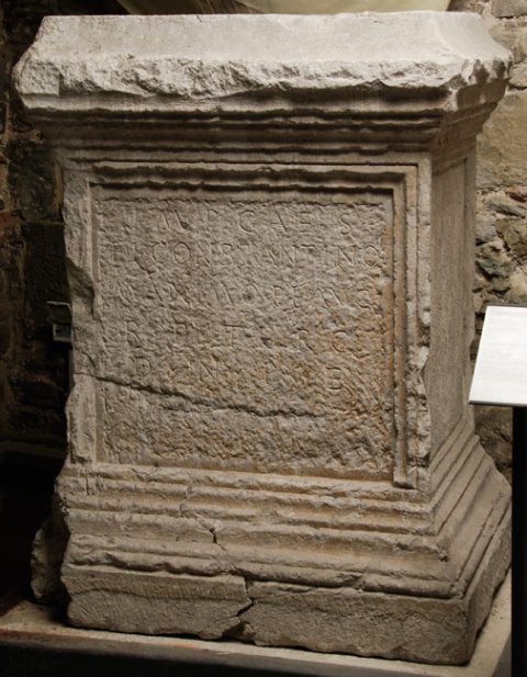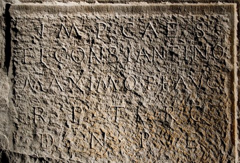 16169 Inschrift für Quintus Baienus Blassianus, wieder verwendet für Kaiser Konstantin