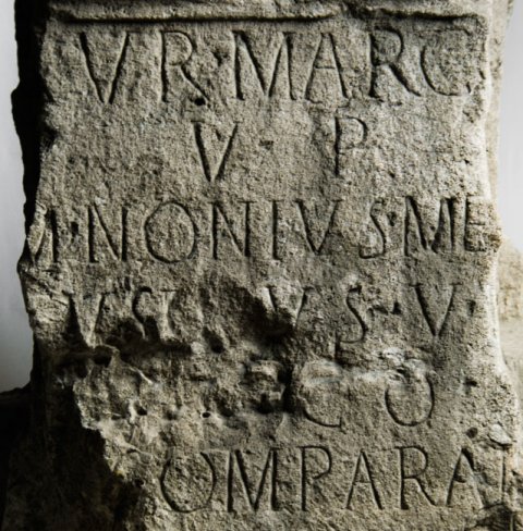 - [-] Aur(elio) Marco / v(iro) p(erfectissimo) / M(arcus) Nonius Mer/cusenus v(ir) [e(gregius)?] / [ami]co / [in]comparab(ili)