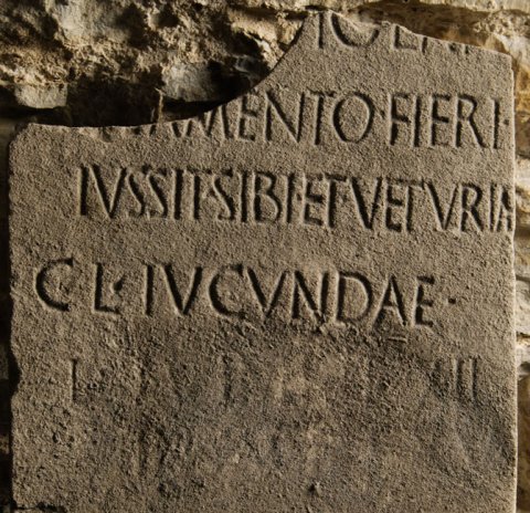 - ---] / testamento fieri / iussit sibi et Veturiae / C(ai) l(ibertae) Iucundae / l(ocus) [---]XII / [-----]