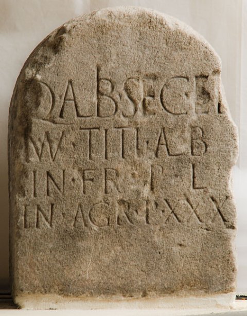 - Q(uinti) Albi Sec(undi) et / M(ani) Titi Alb(ini) / in f(ronte) p(edes) L / in agr(o) p(edes) XXX