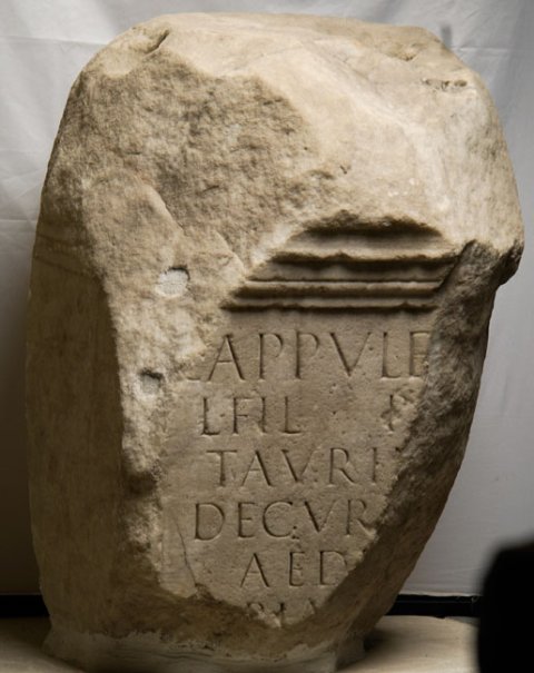 - L(ucio) Appule[io] / L(uci) fil(io) P[up(inia)] / Tauri[no] / decur[ioni] / aed[ili] / [Val]eria [---] / [---
