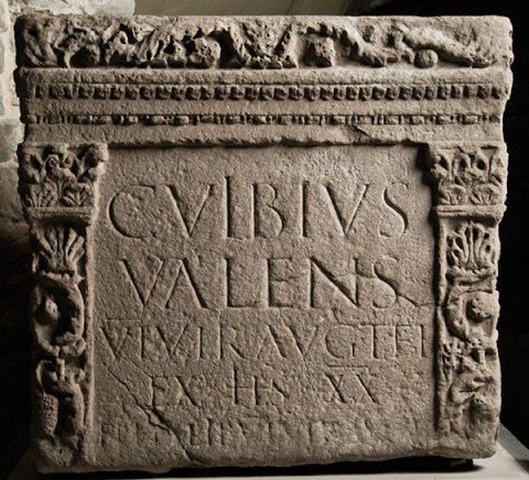 - C(aius) Vibius / Valens / VI vir Aug(ustalis) t(estamento) f(ieri) i(ussit) / ex HS II(milibus) / Felix lib(ertus) VI vir Aug(ustalis) f(ecit)