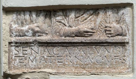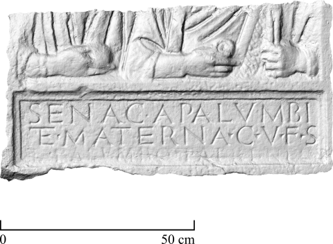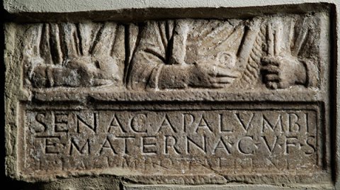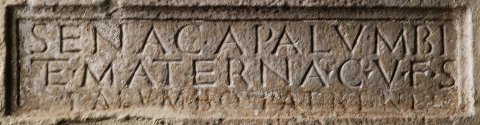 - Senaca (!) Palumbi / et Materna c(oniux) v(ivi) f(ecerunt) s(ibi) / et Palumbo patri an(norum) LX[-]