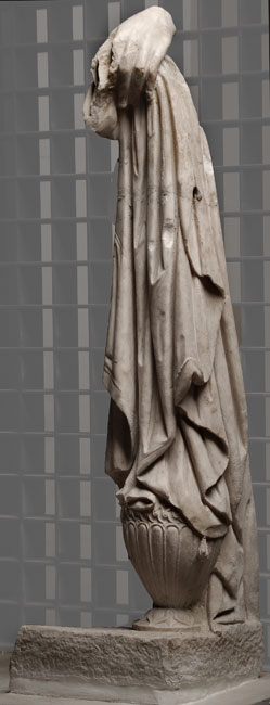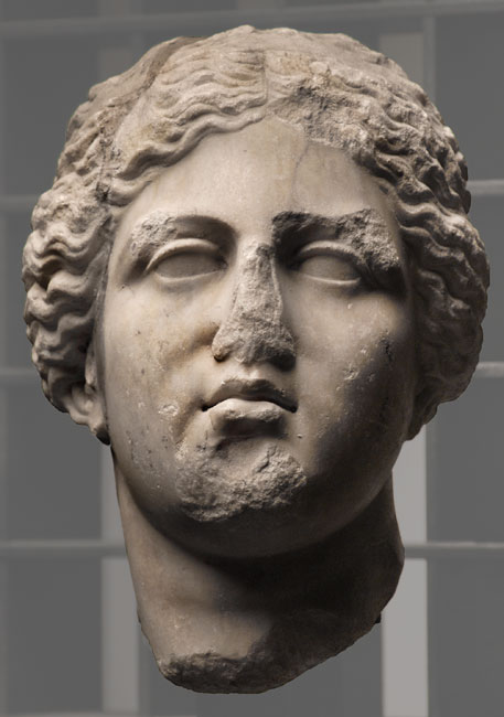 - nur Kopf, linke Hand mit Gewand u. Gefäß auf eckiger Plinthe erhalten