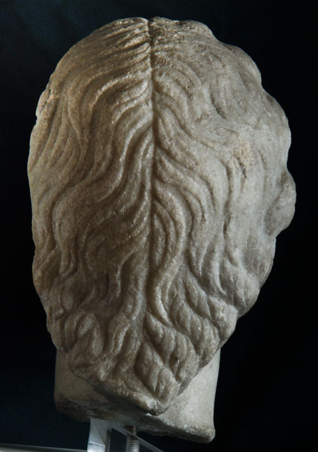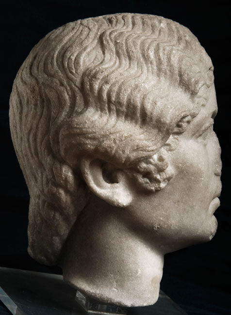 - nur rechte Gesichtshälfte und Hinterkopf erhalten, Hals zum Einsetzen bearbeitet