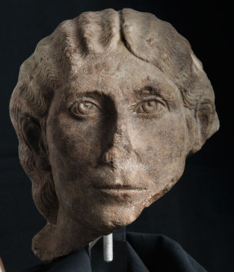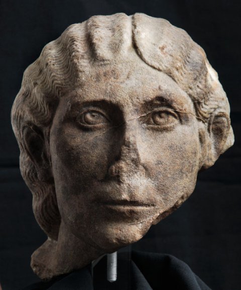 - Porträt einer Frau mit Melonenfrisur und am Hinterkopf aufgestecktem Zopf (Frisur der Kaiserin Otacilia Severa)