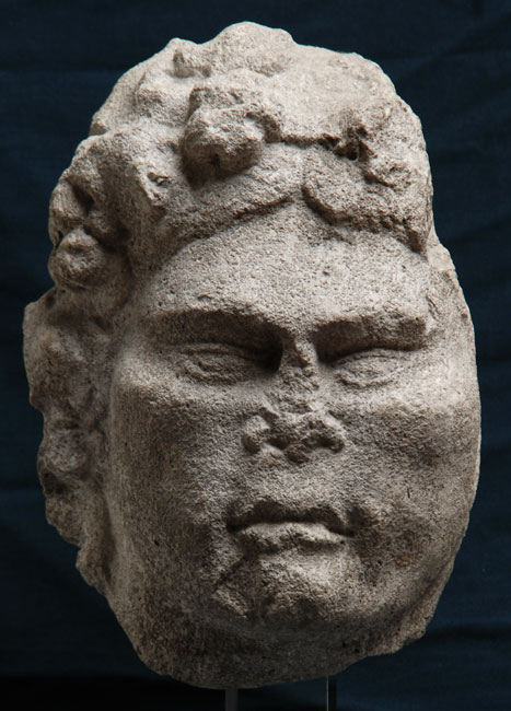 - mythische Figur: Kopf eines Satyrs mit Kranz im Haar