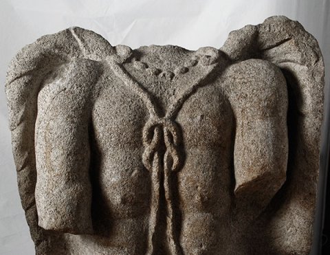 - oben u. unten abgebr. (Kopf, Unterarme, Teile der Flügel u. Beine fehlen)