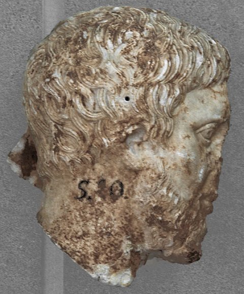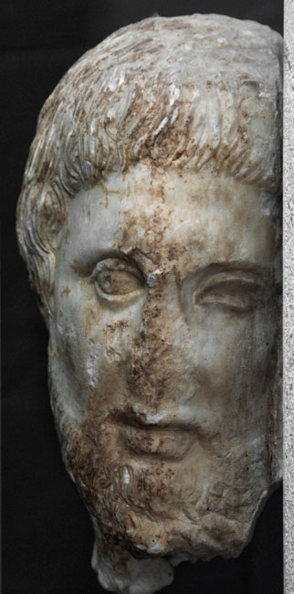 - Kopf eines nach rechts gewandten bärtigen Mannes