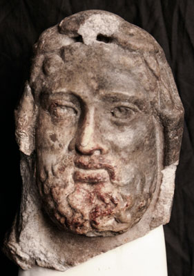 - mythische Figur : bärtiger Hercules mit über den Kopf gezogenem Löwenfell