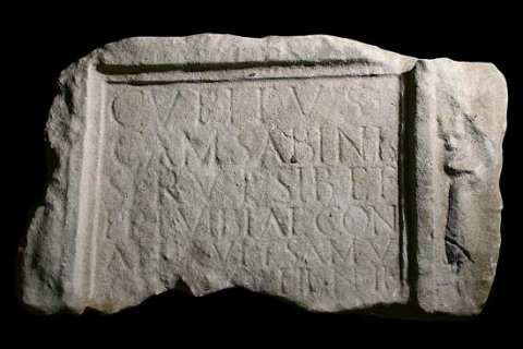 - Cupitus / Cam(mi) Sabini / serv(us) f(ecit) sibi et / Pri(---) Vibiae con(iugi) / an(norum) XXV et Samu/[dae C]u[p(iti)] fil(iae) [a]n(norum) II